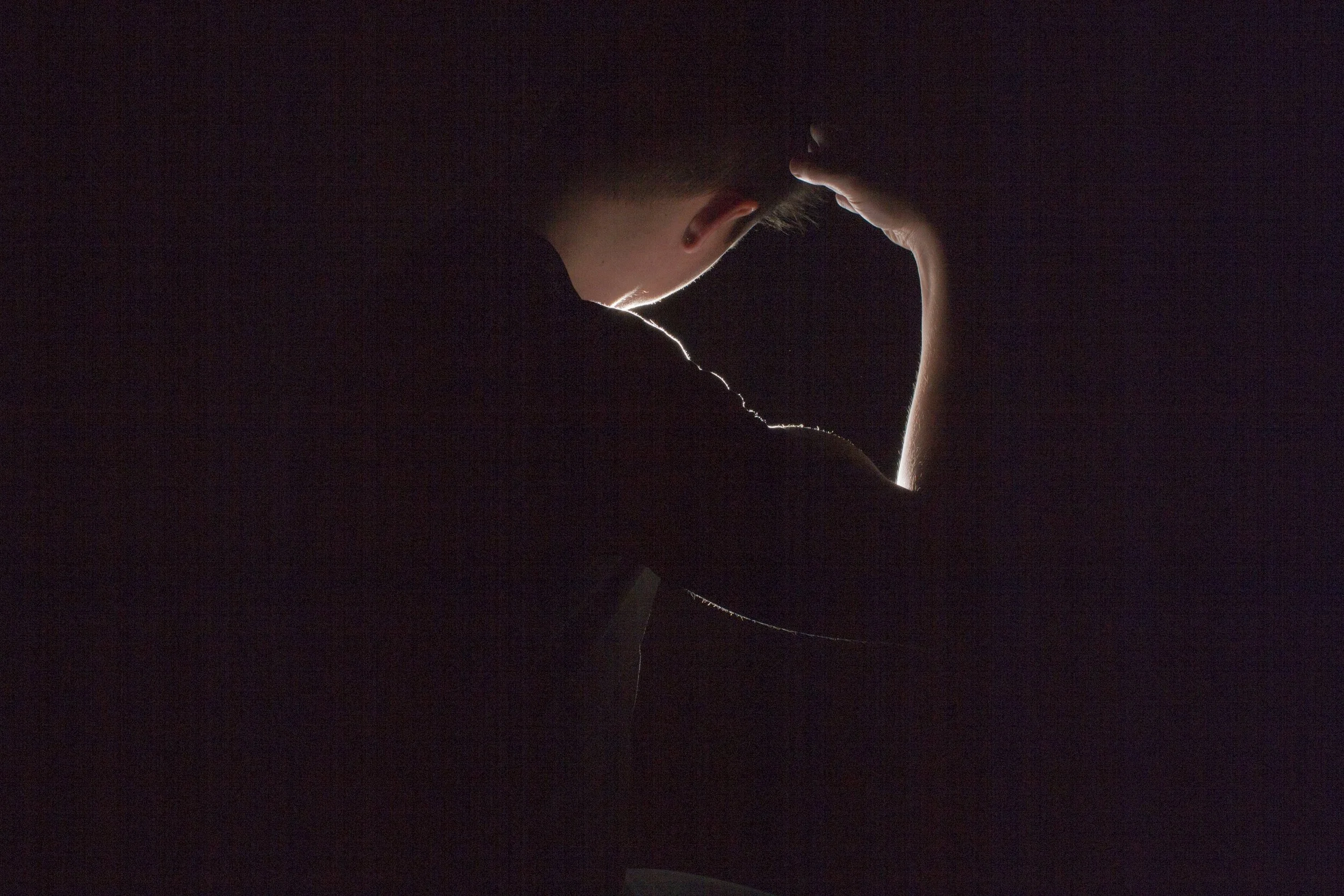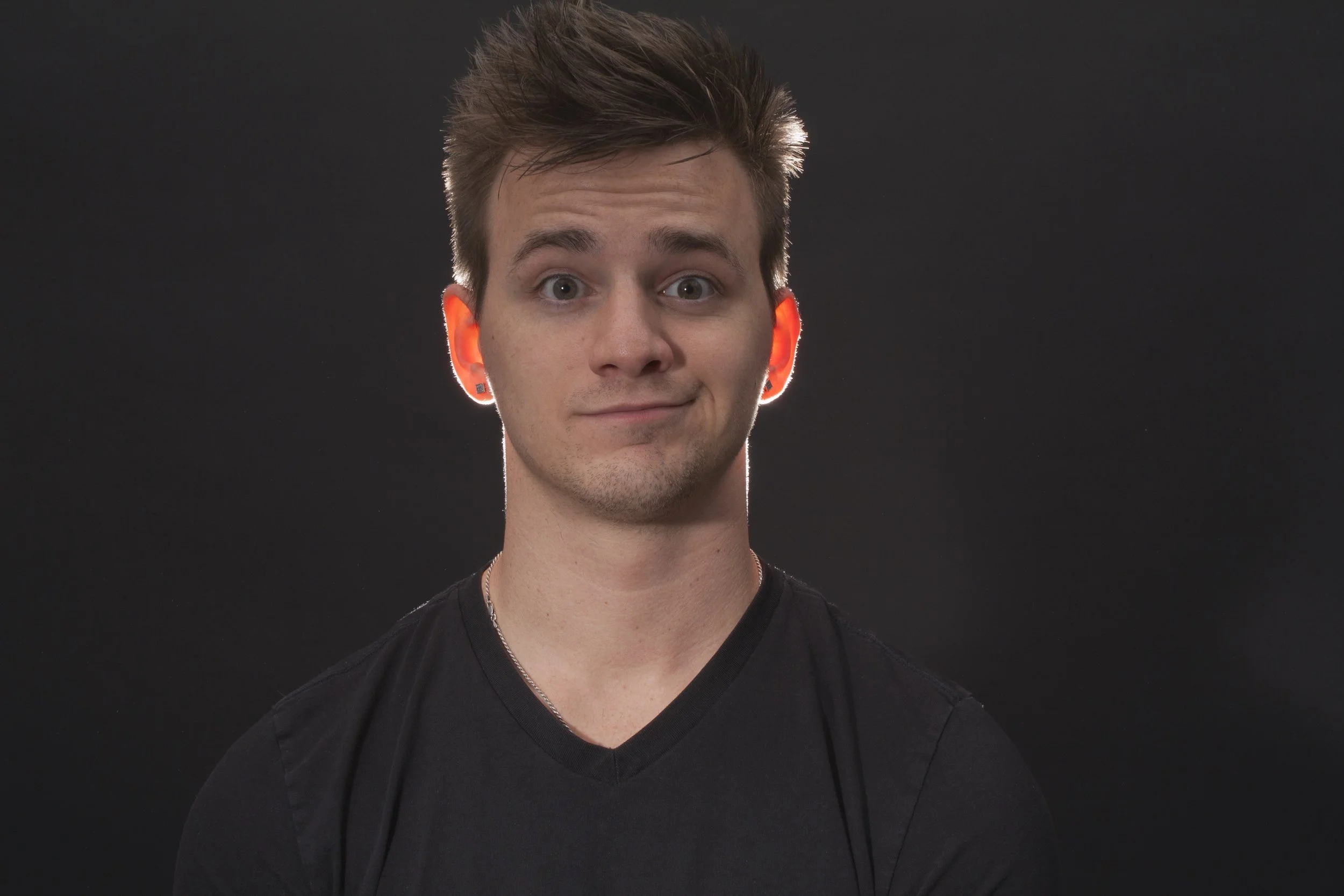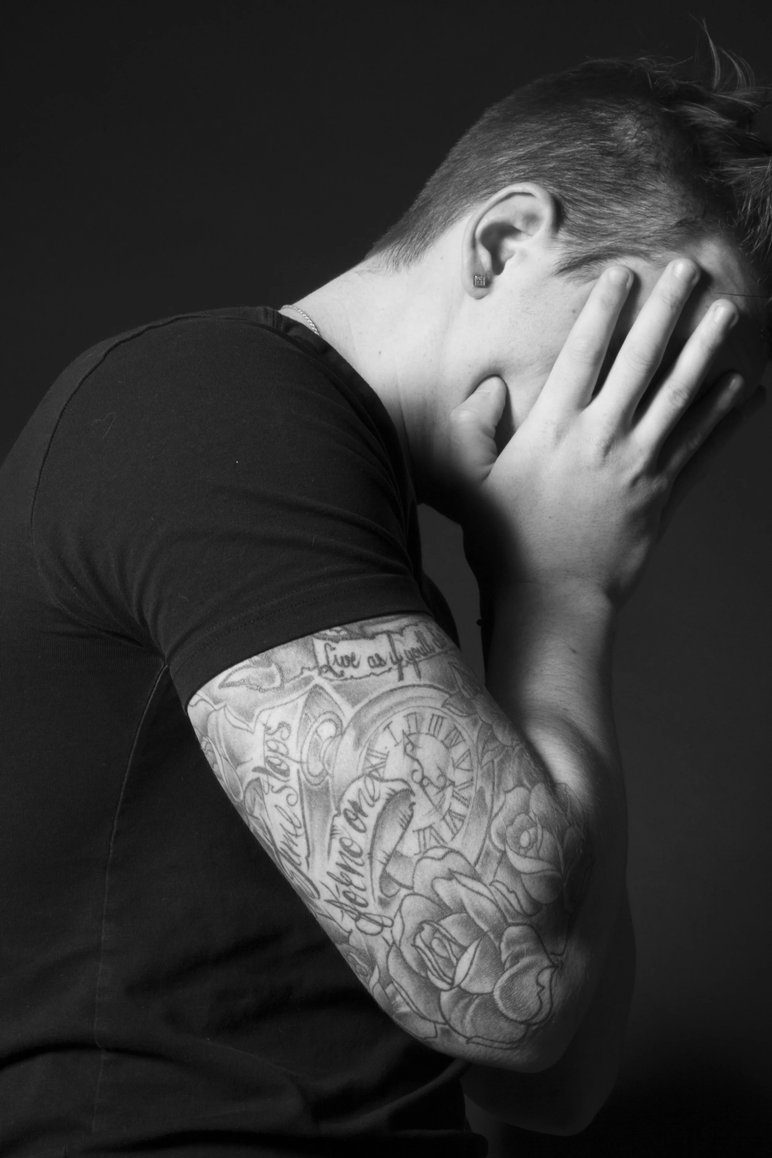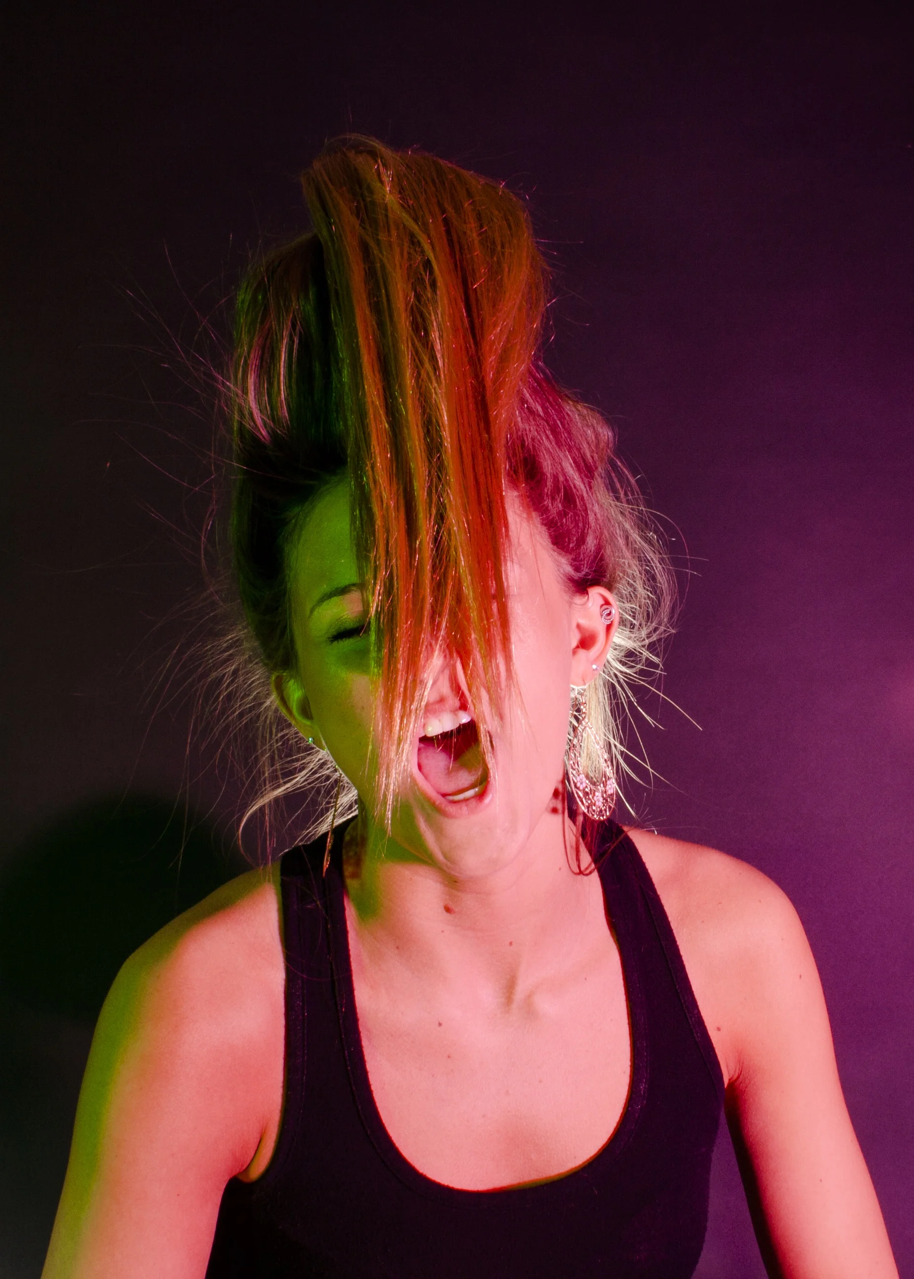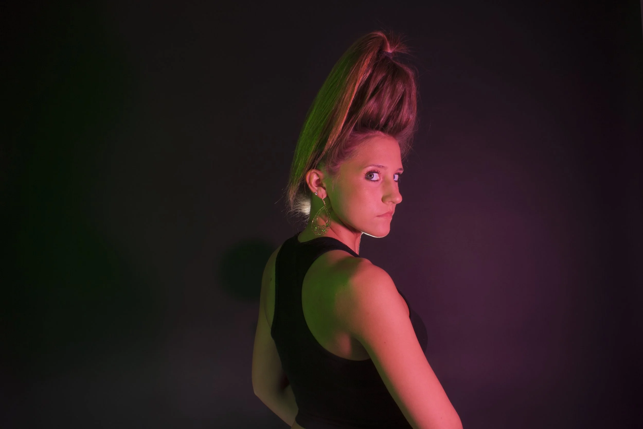 Self Portrait using red and green studio lighting for a contrasting mood.
